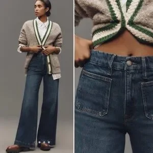 Good American Good Waist PALAZZO Patch Pocket Trouser Jeans Size 31
