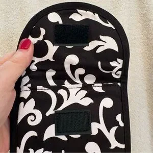Stylish hair tool holder by Thirty-One. Elegant Black Parisian Pop design. Perfect for storing and traveling with hot hair tools.