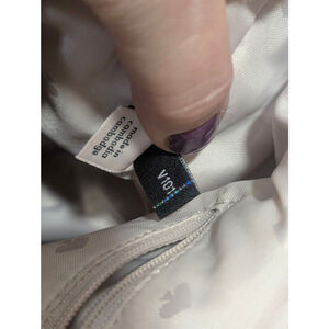 Kate Spade New York crossbody bag in red features a textured leather exterior and a gold-toned "kate spade NEW YORK" logo. It comes with a detachable, adjustable strap in red and white stripes, and a matching small detachable zippered coin pouch. The main compartment has a top zipper closure, a light-colored lining with spade logo motifs, and internal pockets. This is on excellent pre-owned condition - no scuffs or callouts, just light wrinkle creasing. Clean interior too.