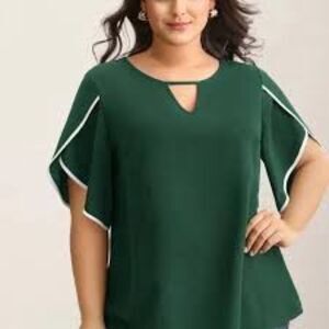 NWT Bloomchic Size 28 Hunter green contrast trim petal sleeve top. Pit to pit 31.5” and length 31”.
