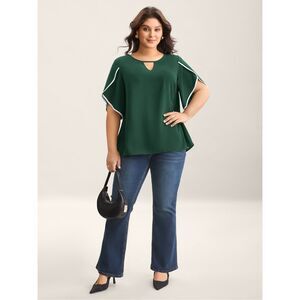 NWT Bloomchic Size 28 Hunter green contrast trim petal sleeve top.