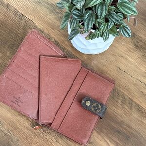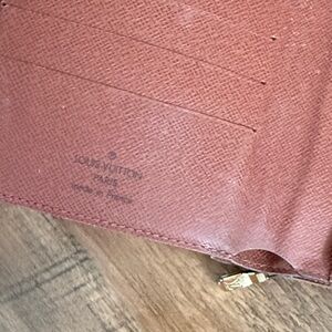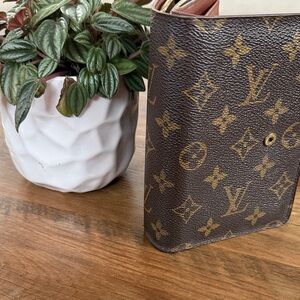 Elegant Louis Vuitton wallet with signature monogram design. Comes with a chic tan card holder.