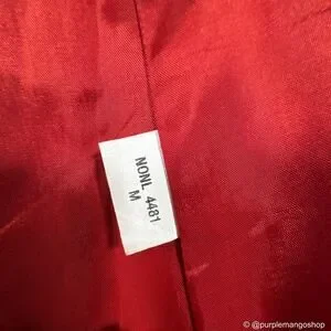 Rendered in a rich cherry-red hue, this jacket features a sleek, body-skimming silhouette with subtle tailoring that defines the waist and elongates the arms. Beautiful bell sleeve cuff with a slit. Very Y2K reminiscent. Minimalist, the kind of piece that elevates denim, slips effortlessly over a silk dress, and commands attention without trying.
