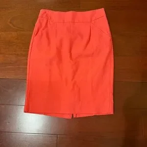 Classic J.Crew The Pencil Skirt in a vibrant coral orange, size 0. Fully cotton with a structured, tailored silhouette that gives a polished and elevated look. Perfect for work, events, or winter styling paired with tights, boots, and luxe knits. A timeless, high-quality wardrobe essential that fits seamlessly into both professional and upscale everyday outfits.