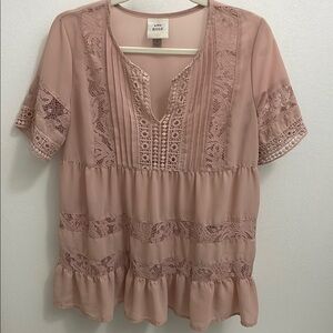 Knox Rose Blush Lace Blouse Size Small Oversized EUC Like New
