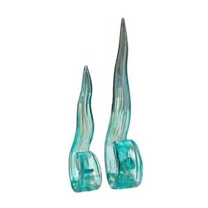 Vintage MCM Murano Style Art Glass Ribbon Swirl Sculpture Set Teal Gold