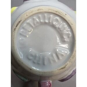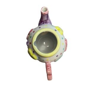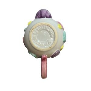 The Bella Casa Teapot With Hearts Vintage is a small ceramic teapot designed with a round shape and a charming heart pattern. This multicolor teapot, made by GANZ, comes with a lid and measures 8.5 inches in length, 8 inches in width, 5.25 inches in height, and 3.25 inches in depth. With its unique design and vintage appeal, this teapot is a perfect addition to any collection or for serving tea at any occasion. Some minor wear on bottom and bottoms of lid (see photos) otherwise excellent condition
