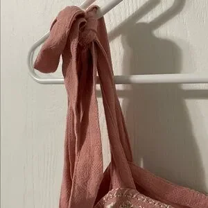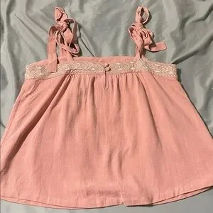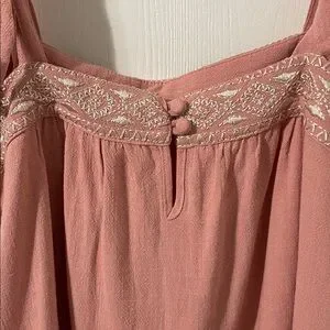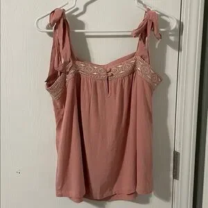 NWT Kori Boho Pink Coral Flowy Embroidered Trim Tie Strap Top Size Medium