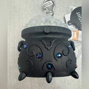 NWT Bath & Body Works Halloween Witch Cauldron Pocketbac Holder. Brand new and never used still with the tags on. Adorable cauldron pocketbac decorated with rhinestones and bats. Has clear bubbling cauldron top that changes from purple to orange to green and then shuts off. About 3”x3”.