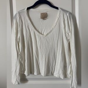 Smoke Free Home Elegant and versatile white V-neck top for any occasion. Perfect for layering or wearing on its own.