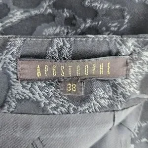 APOSTROPHE PARIS Animal Print Silk A-Line Skirt | SZ FR 38 / US M - Chic A-line skirt with a gray and black animal print; designed to sit on hip; silk blend for a rich feel and sheen; button flap detail at waist; back zip; fully lined. Excellent Condition - purchased new in Paris boutique and worn a handful of times - no damage
