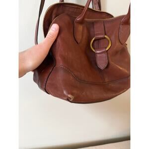 Frye BOHO brown cognac leather ring dome HOBO crossbody purse bag