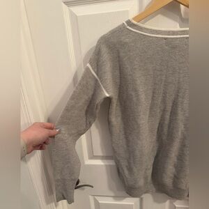 Elevate your wardrobe with this NWOT Banana Republic sweater made with fine Italian yarn by Filpucci. The grey color with cream accents and crewneck style make it a versatile addition to any outfit. This sweater is made with 42% merino wool and 10% cashmere, providing superior warmth and comfort.