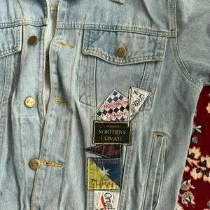 Vintage Lightwash Jean Jacket Men’s Medium Patches Northern Climate Denim Coat