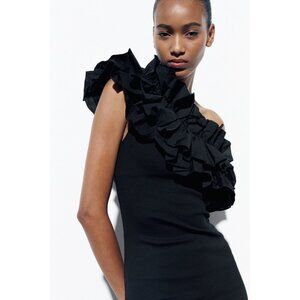 Zara Womens Black One Shoulder Asymmetrical Ruffle Mini Dress Bodycon size M