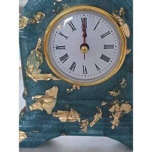 Handmade Resin Desk Clock Decoration Gift Blue With Gold Leaf 728