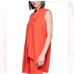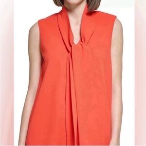 🧡 NWT! Orange CALVIN KLEIN Tie-Neck Sleeveless Shift Dress - Size 14