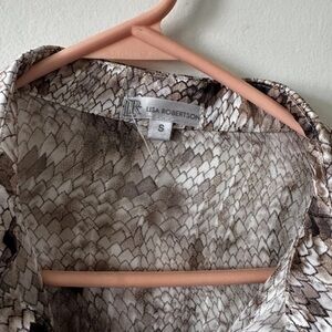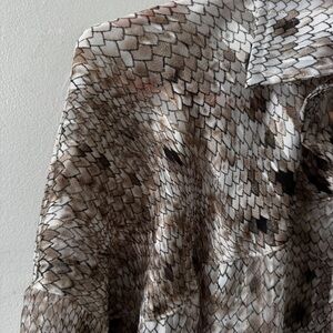 Elevate your wardrobe with this chic snake print blouse. Features a stylish button-up front and long sleeves, perfect for any occasion.