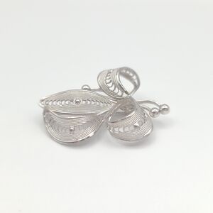 Silver Filigree Leaf Vintage Brooch