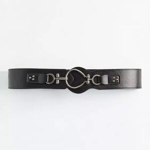 Jet black belt featuring a hook/latching silver belt buckle. New with tags in a size 3x.
