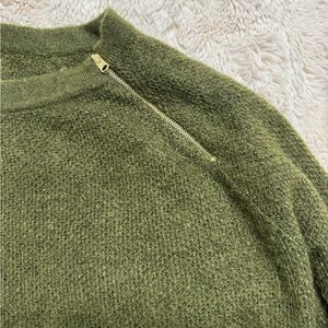 Stylish olive green knit sweater. Ideal for cool weather. Chic zipper detail on shoulder. Very cozy and comfortable. Worn once.