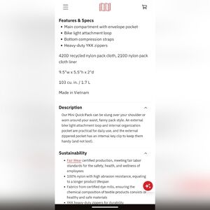 Topo Designs Mini Quick Pack Sling Bag Fanny Pack Hiking Travel Y2K