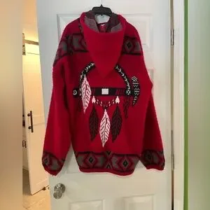 vintage Tejidos Ruminahui red wool full-zip hooded sweater - XL