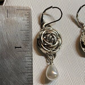 These elegant silver earrings feature a beautiful rose design with a classic pearl drop, adding a touch of sophistication to any outfit. Retro 90s fashion style 80s 90s. Lightweight. Gift box included free gift with purchase