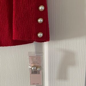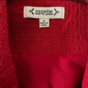 Brand new Nanette Lepore red tweed jacket in the shade “Red Riding Hood.” Classic, elegant design with luxe pearl-style buttons and a fully lined interior. The textured tweed gives it a timeless, Parisian-inspired look—perfect for work, events, or dressing up denim.