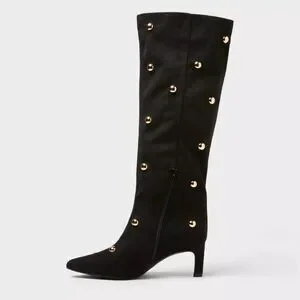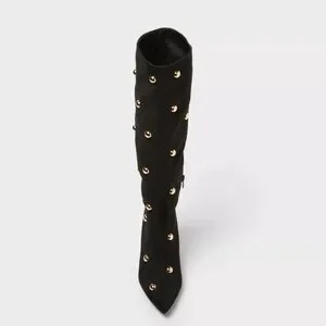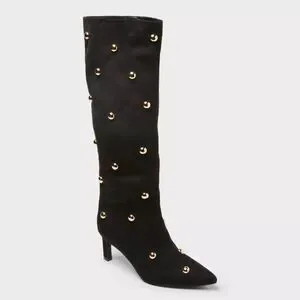 Step into standout style with these Justice Boots with Memory Foam Insole from A New Day. These mid-calf boots have a jet black upper dotted with gold-tone studs to add a hint of shine to your steps. Set on a memory foam cushioned insole and TPR outsole, these medium-width boots with a closed almond toe have a 2.25-inch-high cone heel for a statement lift to your height, and a side zipper closure for easy on and off.