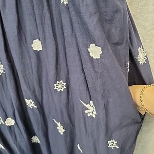 GRETCHEN SCOTT Big Love Dress Blue Embroider Midi Maxi Off The Shoulder Cotton M