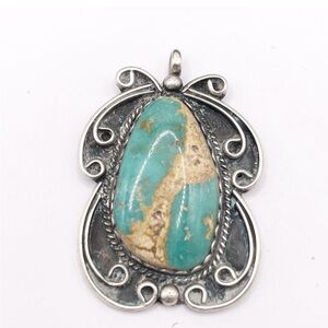 Royston Turquoise 925 sterling silver pendant. Beautiful Navajo made pendant. Large 1 1/2 inches long, 1 inch wide.