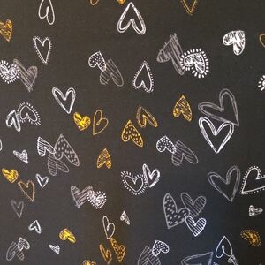 Gold And White Heart Pattern Black Button-down Crop Blouse