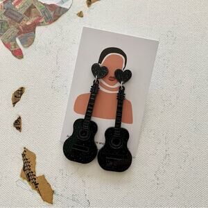 Features: Black Glitter Guitar and Heart Charm Drop Eras Statement Earrings; acrylic statement earrings