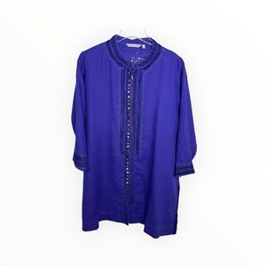 Soft Surroundings Tunic Top Women's Linen Desert Boho Embroidered India Blouse