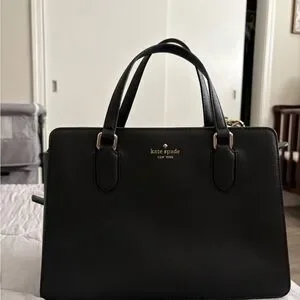 Chic black tote by Kate Spade. Features elegant handles and minimalist design.