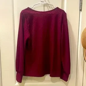 NWOT…Super cute Kaileigh Women's Patterned Blouse. Beautiful burgundy/wine color. Very classy look to the blouse. Pairs great with heels and a skirt. Long Sleeves and a v neckline.