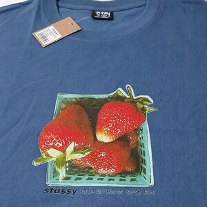 Stussy Blue Tee with Strawberry Graphic