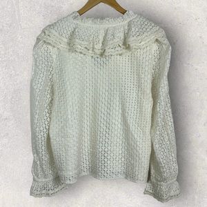 Sezane Stessy Blouse Ecru Top Size 46 French US 14 Ruffle Lace Romantic Minimal