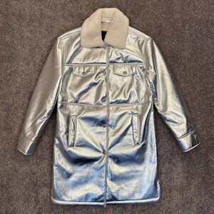 7 For All Mankind Women's Coat Size XS Metallic Silver Jacket Faux Fur NWT