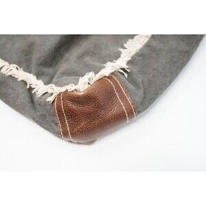 This is a Myra brand tote bag for women in a gray leaf print design. It features faux leather and faux fur accents, with an exterior made of canvas. The style of the bag is boho, making it a unique and fashionable accessory.
