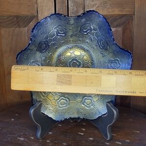 Antique Fenton "Captive Rose" carnival glass bowl in cobalt blue. Rare Find. No chips or cracks and is in Super Excellent Original Condition. $85.