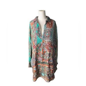 lightweight fabric and has a relaxed fit. It features a variety of patterns, including floral and paisley motifs.