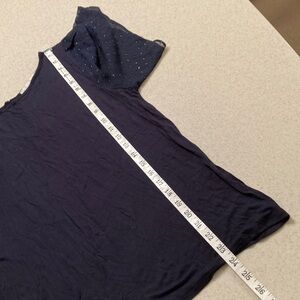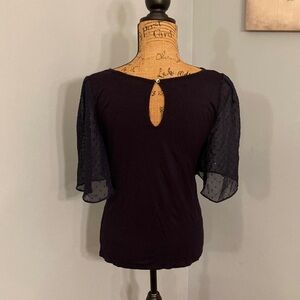 LOFT Dark Blue Blouse with Sheer Sparkly Dot Sleeve Women Size Small