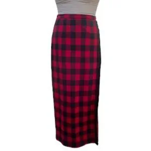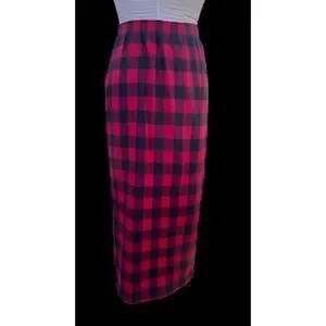 Vintage Buffalo Plaid Pull-On Skirt by Bechamel, LIKE NEW! Just beautiful. Fringe detail. Hits just above the ankle. 100% heavy cotton.
