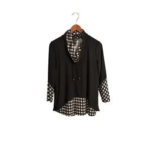 Brand new with tags! This chic Ali Miles double-layer top features a versatile black outer layer with a stylish black-and-white checker pattern on the under layer for a unique layered look without the bulk. Flattering and easy to wear, it pairs perfectly with dress pants, skirts, or jeans. Great for work, travel, or casual outings.