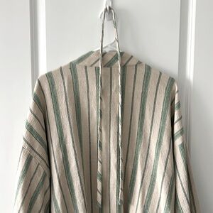 Zara Rustic Beth cotton kimono jacket in green stripes on cream