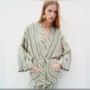 Zara The Beth Cotton Stripe Kimono Jacket Size XL