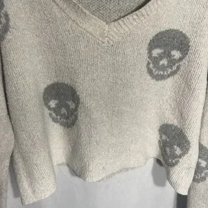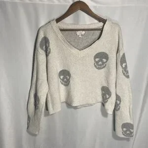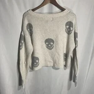 PINK REPUBLIC beige gray skulls long sleeve cropped pullover sweater XL