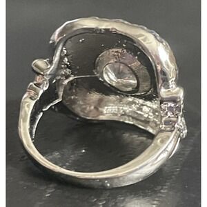 Art Deco Revival Ring Size 5.5 Solitaire Rhinestone Silver Tone Purple Enamel